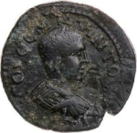 bare-headed, draped and cuirassed bust of Hostilian, right, seen from rear