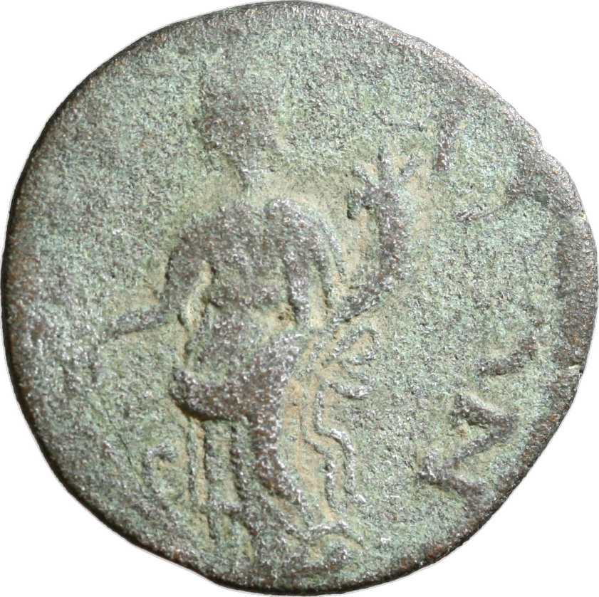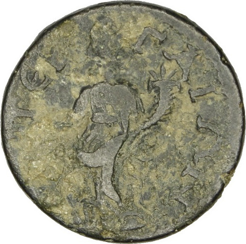 laureate, draped and cuirassed bust of Etruscus, right, seen from rear; below, globe