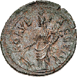 laureate, draped and cuirassed bust of Volusian, right, seen from rear