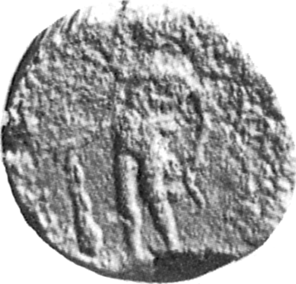 Heracles standing left, holding club and lion skin