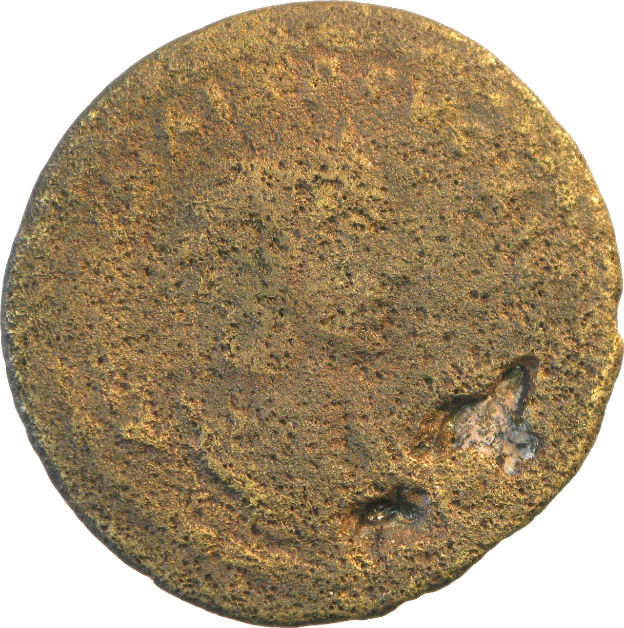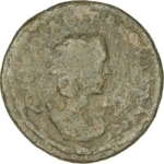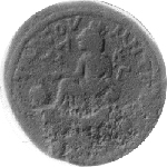 turreted and veiled Tyche seated on rocks, left, holding ear of corn; at her feet, river god (Kydnos) swimming, left |