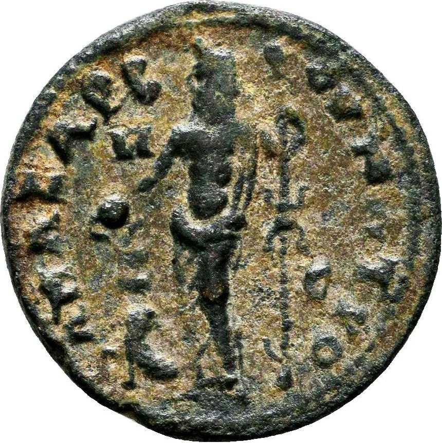 bare-headed, draped and cuirassed bust of Hostilian, right, seen from rear |