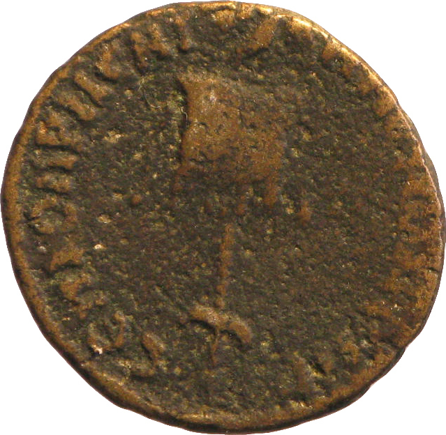 eagle, spreading wings, head left, standing on vexillum (inscribed L III P), holding wreath in beak |