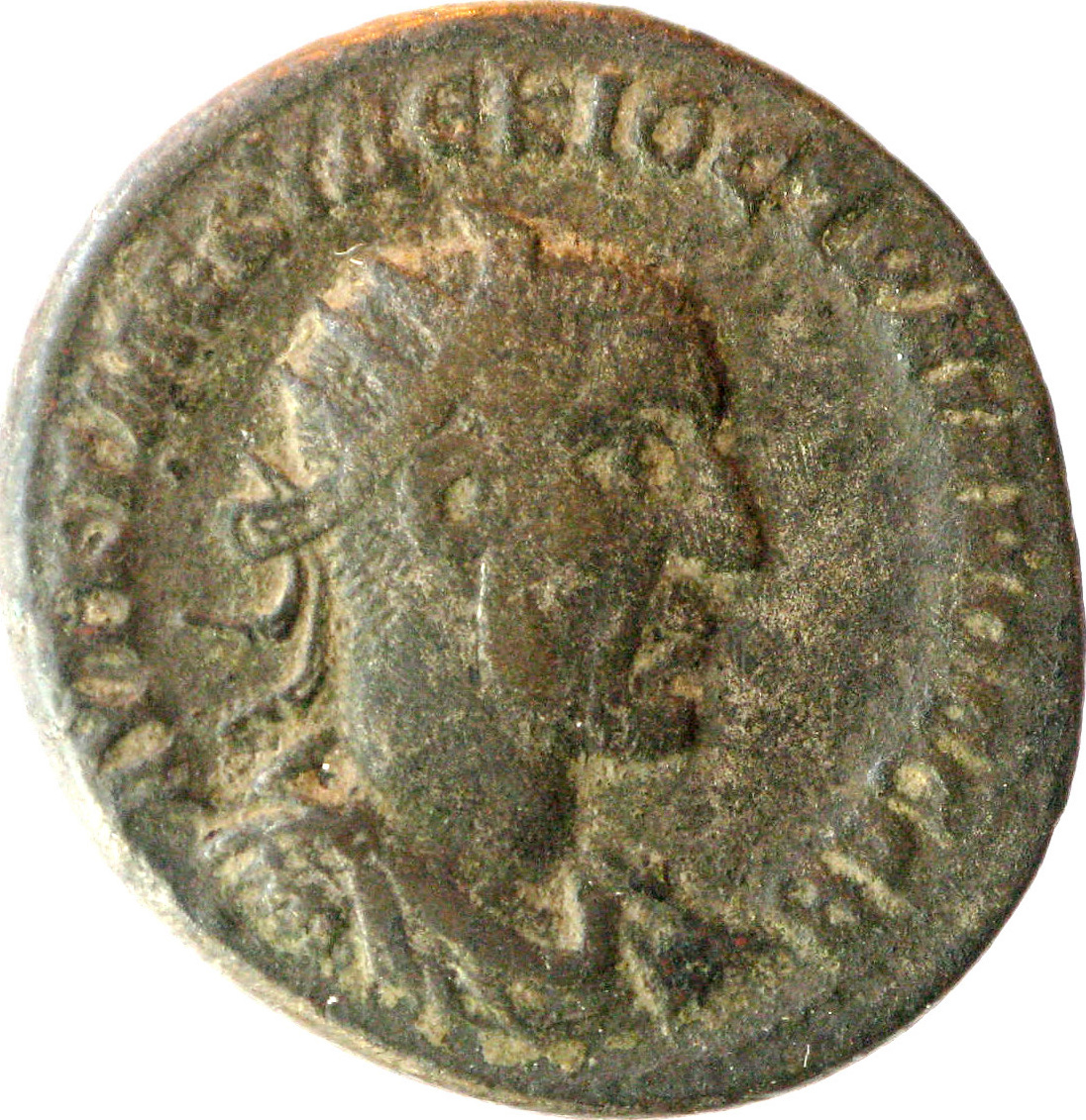 radiate, draped and cuirassed bust of Decius, right, seen from front; below bust: • |