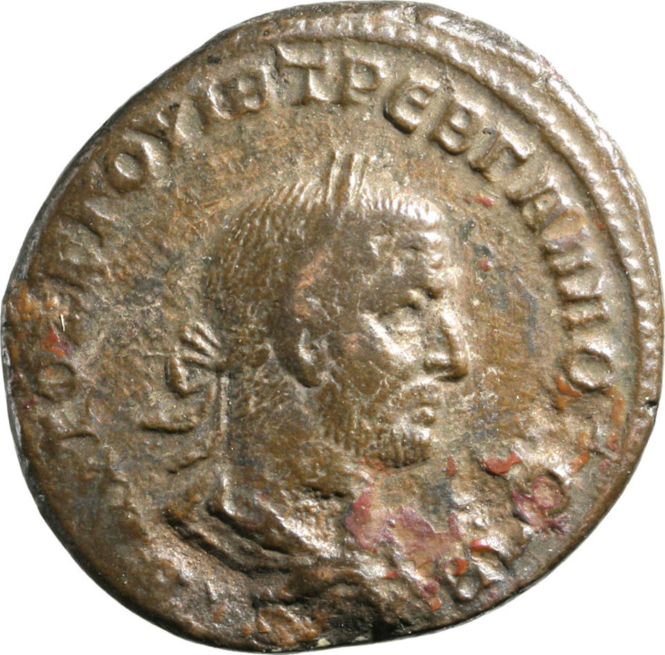 Edition Αὐτοκράτωρ Καῖσαρ Γάϊος Οὐίβιος Τρεβωνιανὸς Gάλλος Σεβαστός Αὐτοκ(ράτωρ) Κ(αῖσαρ) Γ(άϊος) Οὐίβ(ιος) Τρεβ(ωνιανὸς) Gάλλος Σεβ(αστός)