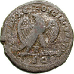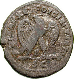 eagle standing on line, facing, head left, spreading wings, holding wreath in beak; between legs: Β |