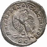 eagle standing on line, facing, head right, spreading wings, holding wreath in beak; between legs: Δ |