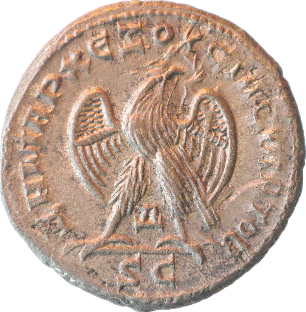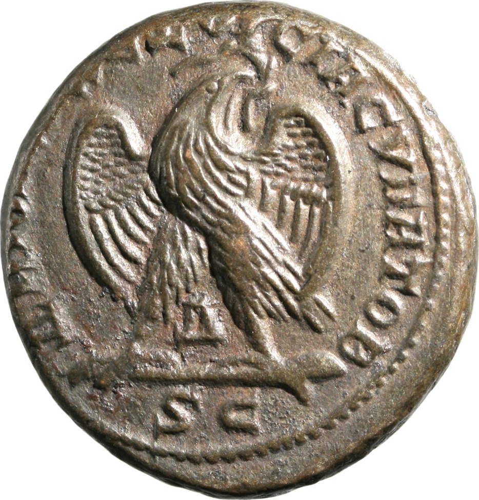 eagle standing on line, facing, head right, spreading wings, holding wreath in beak; between legs: Δ |