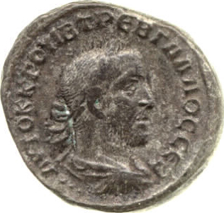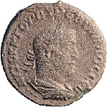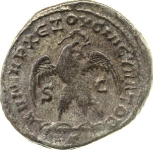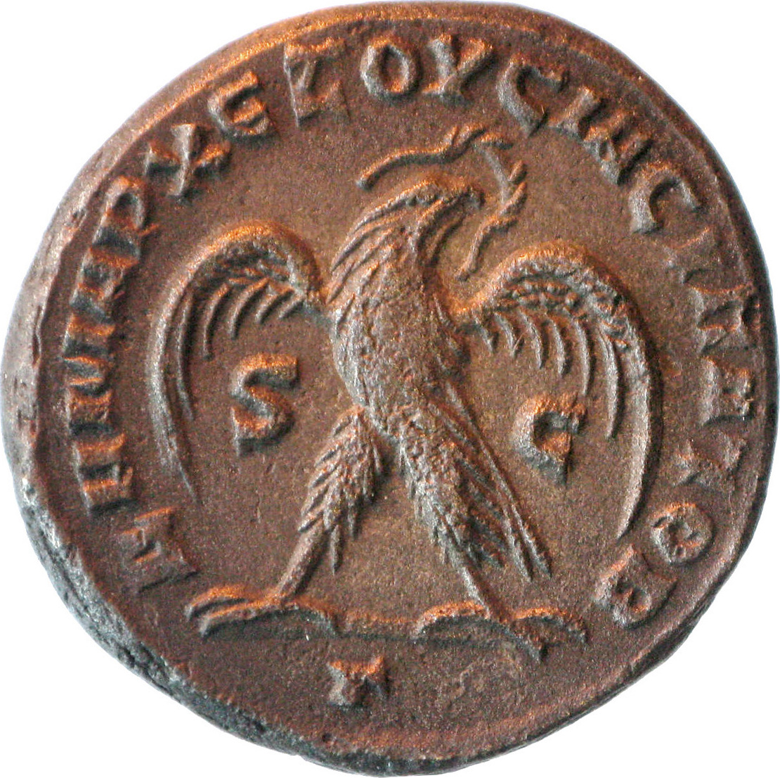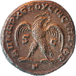 eagle standing on line, facing, head right, spreading wings, holding wreath in beak; in exergue: Γ |