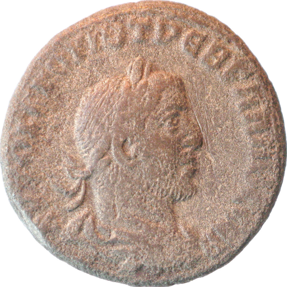 eagle standing on line, facing, head left, spreading wings, holding wreath in beak; in exergue: Ϛ |