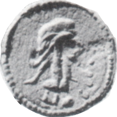 laureate head of the Roman emperor, right; before, •••• (vertical)
