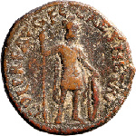 Mars standing right, holding spear and shield |