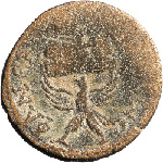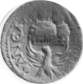 Mount Gerizim with temple in perspective, and altar (on the left), steep stairway and colonnade; below, eagle facing, head left, spreading wings; sometimes, at top, crescent and star