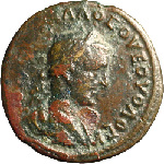 laureate, draped and cuirassed bust of Volusian, right, seen from rear |