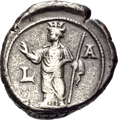 laureate, draped and cuirassed bust of Decius, right, seen from rear |