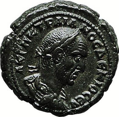 Obverse inscription Α Κ Γ Μ Κ ΤΡΑΙΑΝΟϹ ΔΕΚΙΟϹ ΕΥ