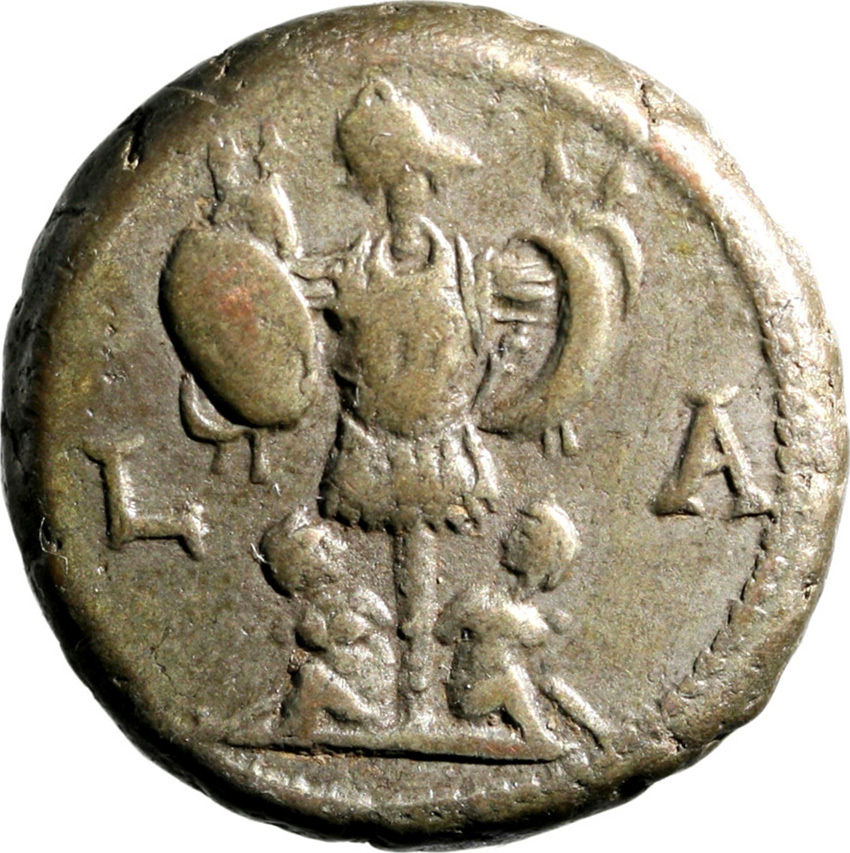 laureate, draped and cuirassed bust of Decius, right, seen from rear |
