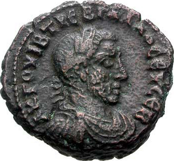 Obverse inscription Α Κ Γ ΟΥΙΒ ΤΡΕΒ ΓΑΛΛΟϹ ΕΥϹΕΒ