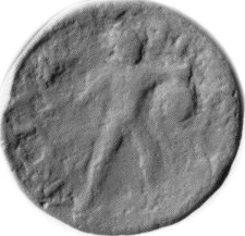 Hylas advancing right, head left, mantle floating behind him, holding vase
