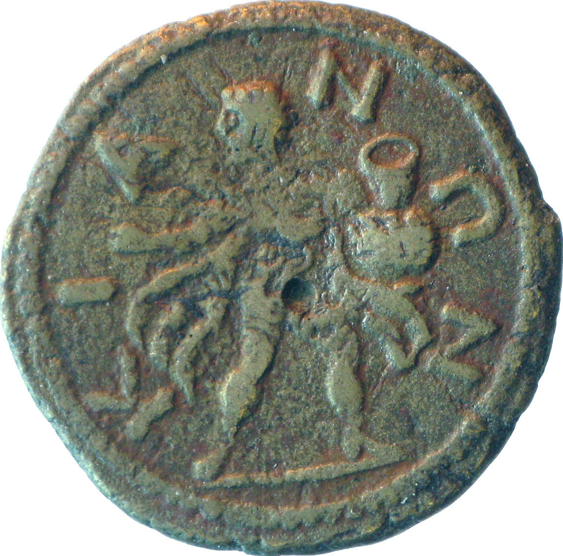 laureate, draped and cuirassed bust of Volusian, right, seen from rear |