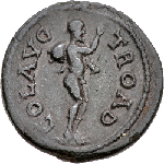 bare-headed, draped and cuirassed bust of Volusian, right, seen from rear |