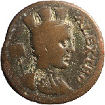 draped bust of Tyche, right; behind her, vexillum inscribed CO AV