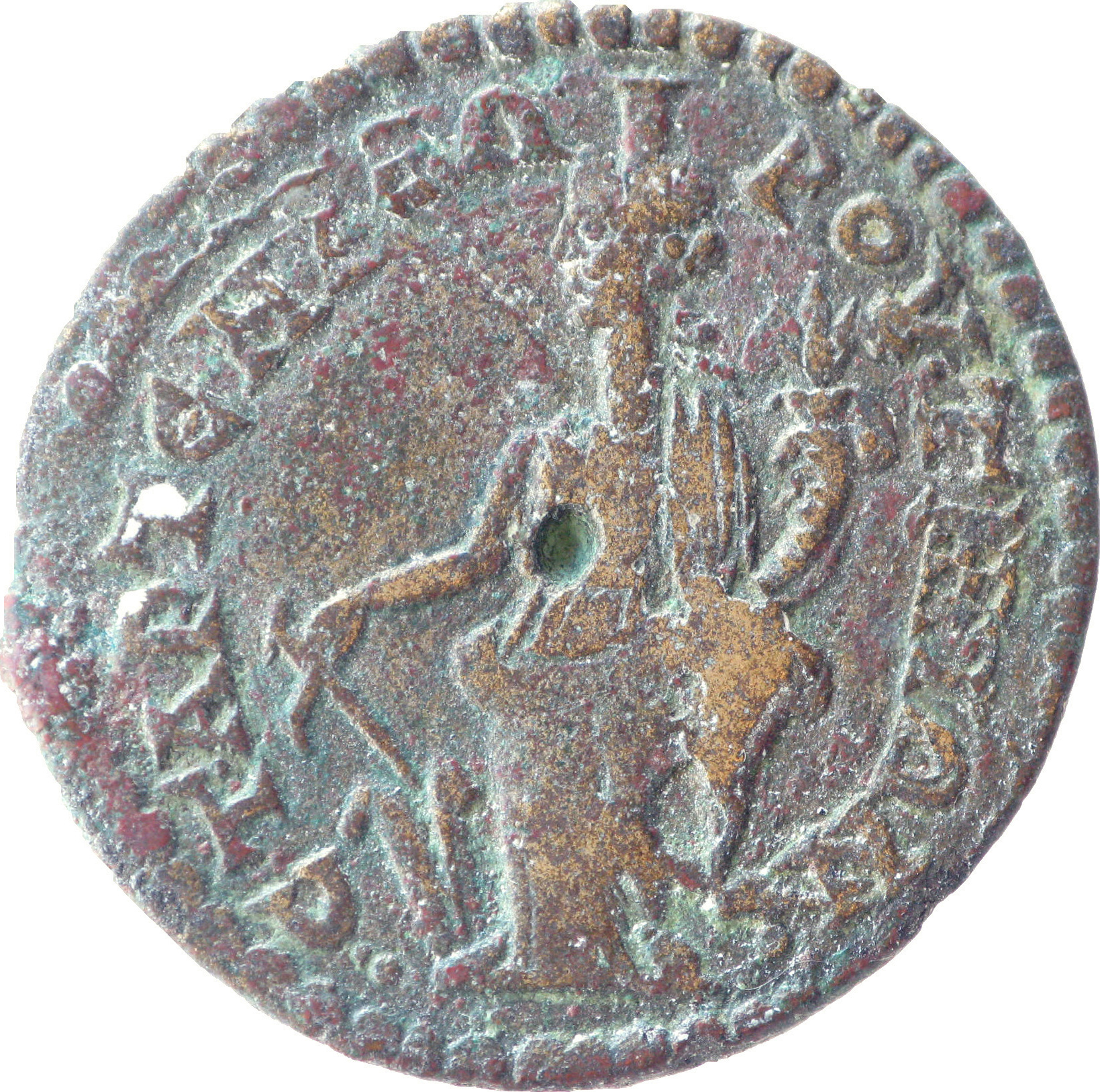 Tyche standing left, holding rudder and cornucopia