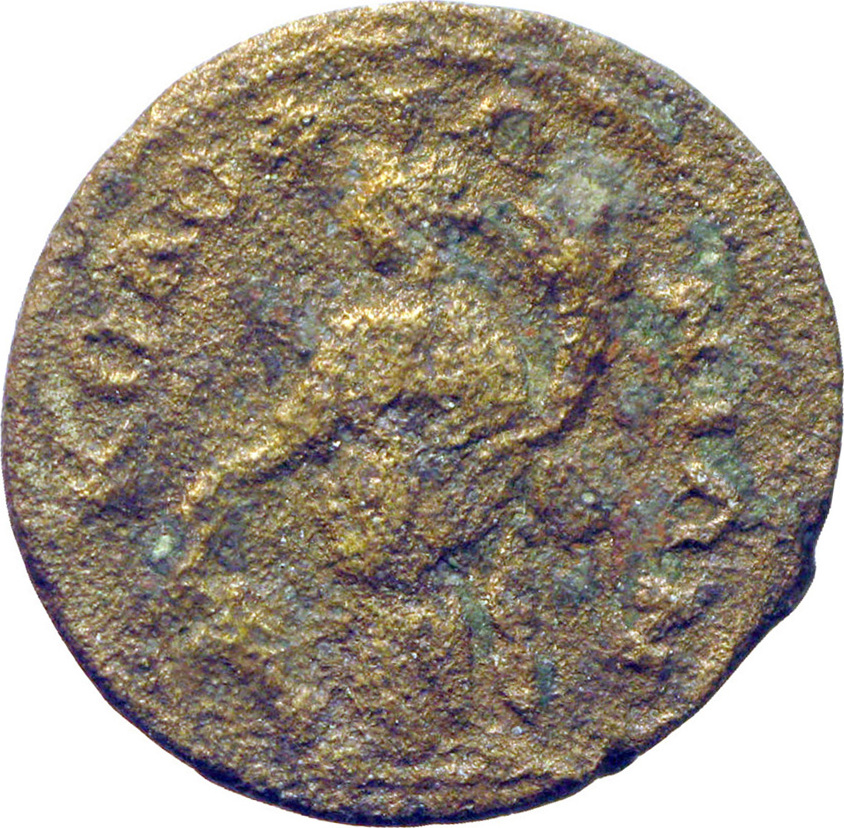 Tyche standing left, holding rudder and cornucopia