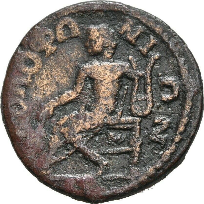 Apollo (Klarios) seated left, holding branch and lyre