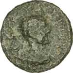 bare-headed, draped and cuirassed bust of Etruscus, right, seen from front