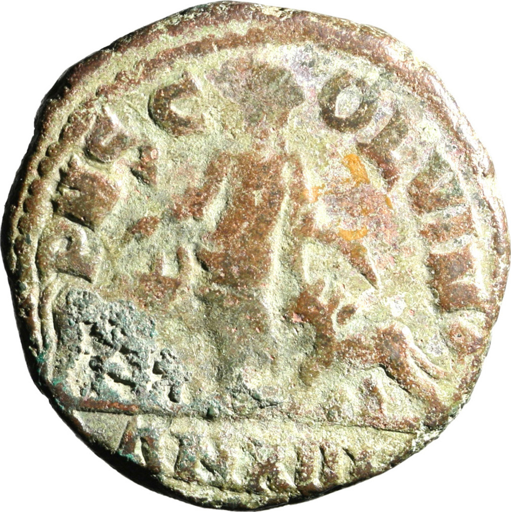 laureate, draped and cuirassed bust of Volusian, right, seen from rear |