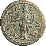 Tyche standing left, holding statue of Samian Hera and cornucopia