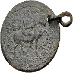 Apollo-Mên on horseback, right, carrying double axe over shoulder |