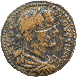 traces of a beard on the obv. and ΗΛƐΙ/ⲰΝ on the reverse: the coin seems overstruck on a coin of Elis of Septimius Severus: compare with CNG EA 221, 28 Oct. 2009, 27 mm, 9.06 g, ex BCD collection, and apparently from the same pair of dies