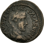 Obverse design laureate, draped and cuirassed bust of Decius, right, seen from rear