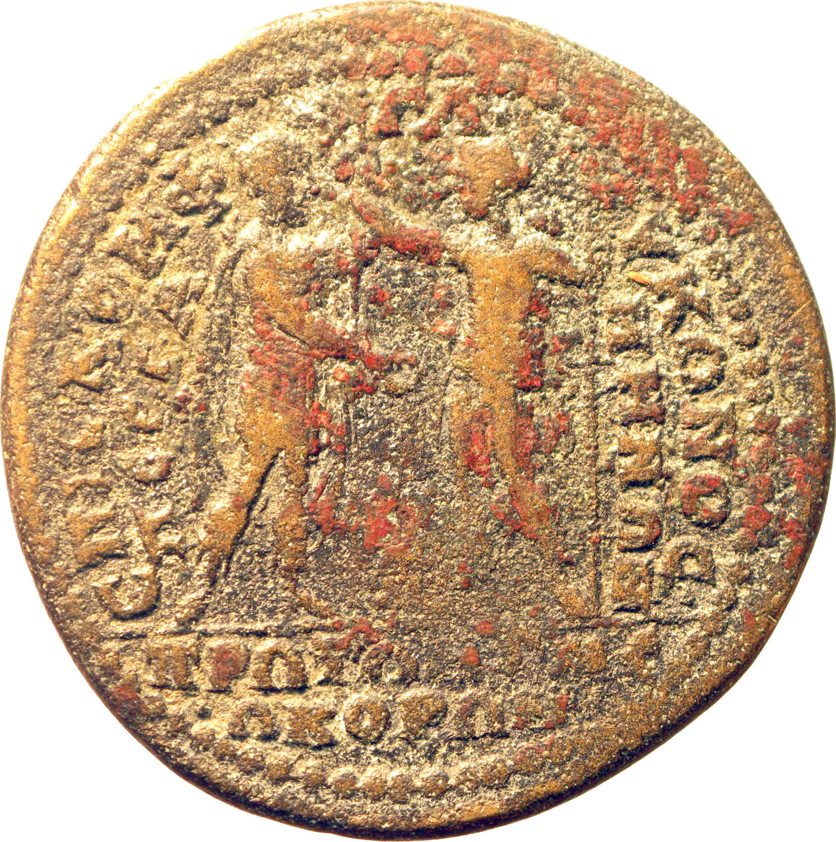 ΕΠΙ Ϲ ΚΟΜ Φ ΓΛΥΚΩΝΟϹ, ΘΕΟΛΟΓΟΥ, ΠΕΡΓΑΜΗΝΩΝ ΠΡΩΤΩΝ Γ ΝΕΩΚΟΡΩΝ (sic) |