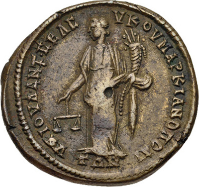 ΥΠ ΙΟΥΛ (or ΙΟΥΛ) ΑΝΤ ϹΕΛΕΥΚΟΥ ΜΑΡΚΙΑΝΟΠΟΛΙΤΩΝ (or ΜΑΡΚΙΑΝΟΠΟΛΙΤΩΝ) Ε |
