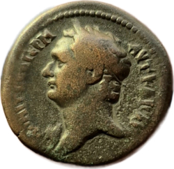 ΑΥΤ ΚΑΙϹΑΡ ΔΟΜΙΤ ϹΕΒ ΓΕΡΜ; head of Domitian wreathed with corn, right with drapery and aegis on left shoulder
