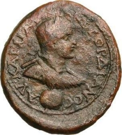[ ]ΗΛΙΑΝ ϹΑΛΩΝΙ[ ], Γ; diademed and draped bust of Salonina, right