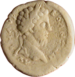 bare-headed bust of Commodus wearing cuirass and paludamentum, right
