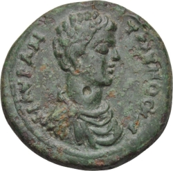 Μ ΑΥΡΗΛ ΑΝΤΩΝΙΝΟϹ ΚΑΙϹΑΡ; bare-headed and draped bust of Caracalla, right, seen from front