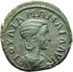 ΙΟΥΛΙΑ ΜΑΜΑΙΑ ΑΥΓ(ΟΥ); diademed and draped bust of Julia Mamaea, right