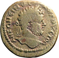 ΑΝΤΩΝΕΙΝΟϹ ΑΥΓΟΥϹΤΟϹ; laureate, draped and cuirassed bust of Caracalla, right, seen from rear