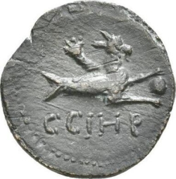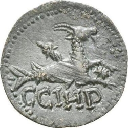 C C I H P; capricorn right, holding globe between legs; cornucopia on back