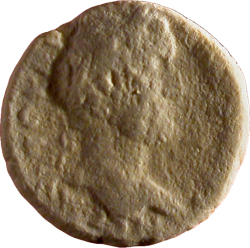 ΑΥ ΚΑΙ ΑΝΤωΝΕΙ; laureate head of Antoninus Pius(?), right