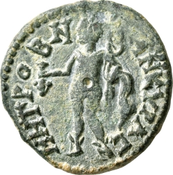 Β Ν ΑΝΚΥΡΑΝΩΝ; Tyche standing left, holding rudder and cornucopia