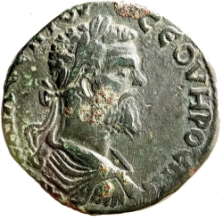 laureate, draped and cuirassed bust of Septimius Severus, right, seen from front