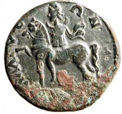Mên on horseback, right, wearing Phrygian cap; behind his shoulders, crescent