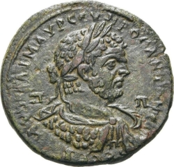 ΑΥΤ ΚΑΙ Μ ΑΥ ϹΕΥΗΡΟϹ ΑΝΤΩΝΕΙΝΟϹ ϹΕΒ, Π Π; laureate, draped and cuirassed bust of Caracalla, right, seen from rear