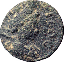 Tyche standing left, holding rudder and cornucopia